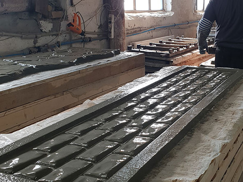 Этапы производства бетонных заборов: заливка в форму